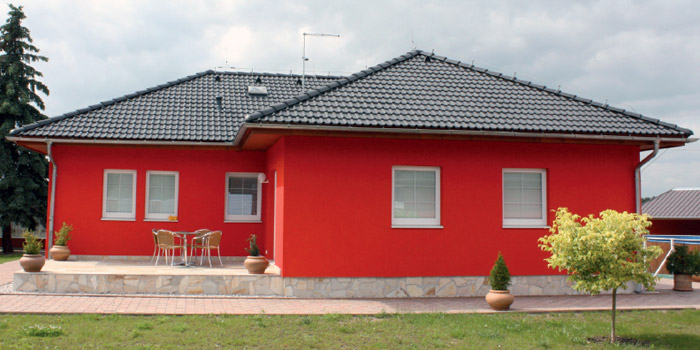 Zástupce řady jednopodlažních domů s členitým provedením valbové střechy, která kopíruje půdorys domu ve tvaru písmene L. Specifickým architektonickým prvkem domu jsou dvě úrovně hřebene střechy.